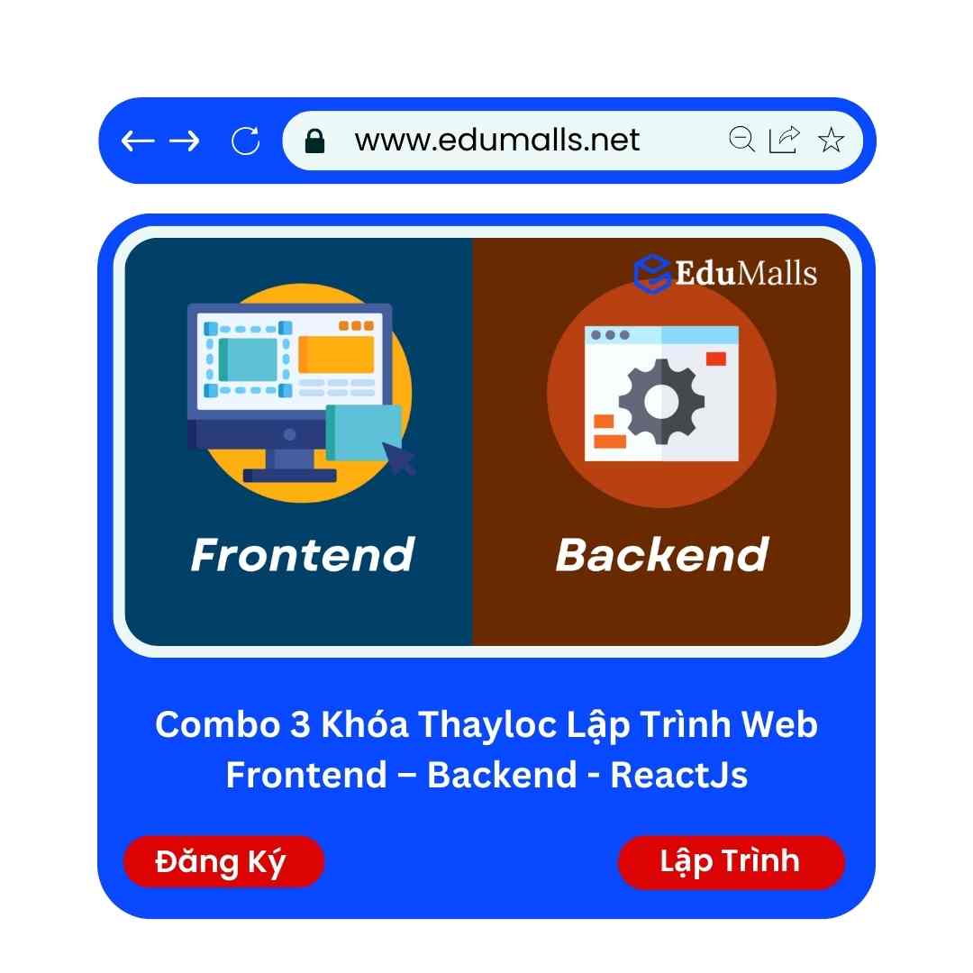 Combo 3 Khóa Thayloc Lập Trình Web Frontend – Backend – ReactJs | Học Rẻ Hơn Cùng EduMalls | Mã: 9206 Gói combo này gồm 3 khóa học lập trình web Frontend, Backend và ReactJs