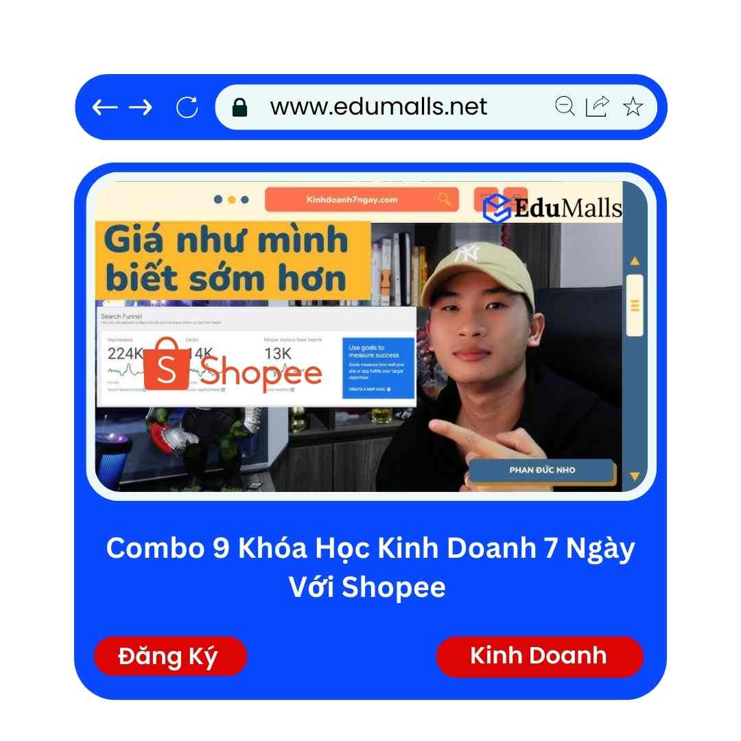 Combo 9 Khóa Học Kinh Doanh 7 Ngày Với Shopee | Học Rẻ Hơn Cùng EduMalls | Mã: 9260 Khóa học này hệ thống các video bài giảng cực kỳ chuyên sâu giúp bạn có cái nhìn tổng quát hơn về kinh doanh trên sàn thương mai điện tử shopee.