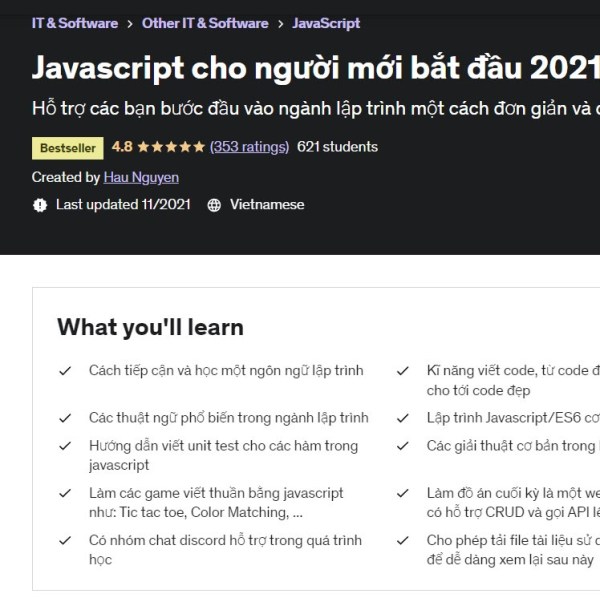 Khóa học Javascript cho người mới bắt đầu của giảng viên Hậu Nguyễn