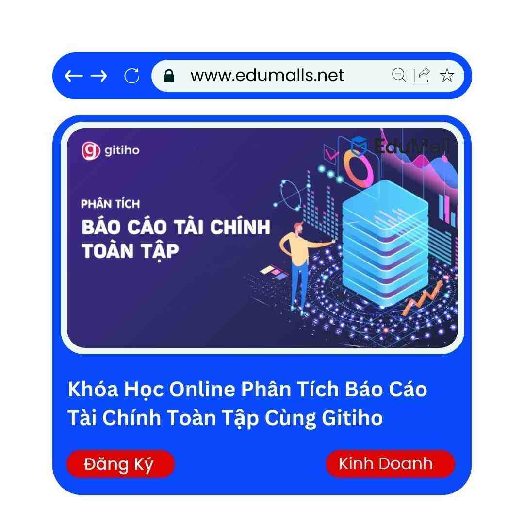 Khóa Học Online Phân Tích Báo Cáo Tài Chính Toàn Tập Cùng Gitiho | Học Rẻ Hơn Cùng EduMalls sẽ giúp bạn hiểu được các báo cáo tài chính, biết cách dùng số liệu khác nhau để phân tích tình hình hoạt động cũng như lợi nhuận của công ty.