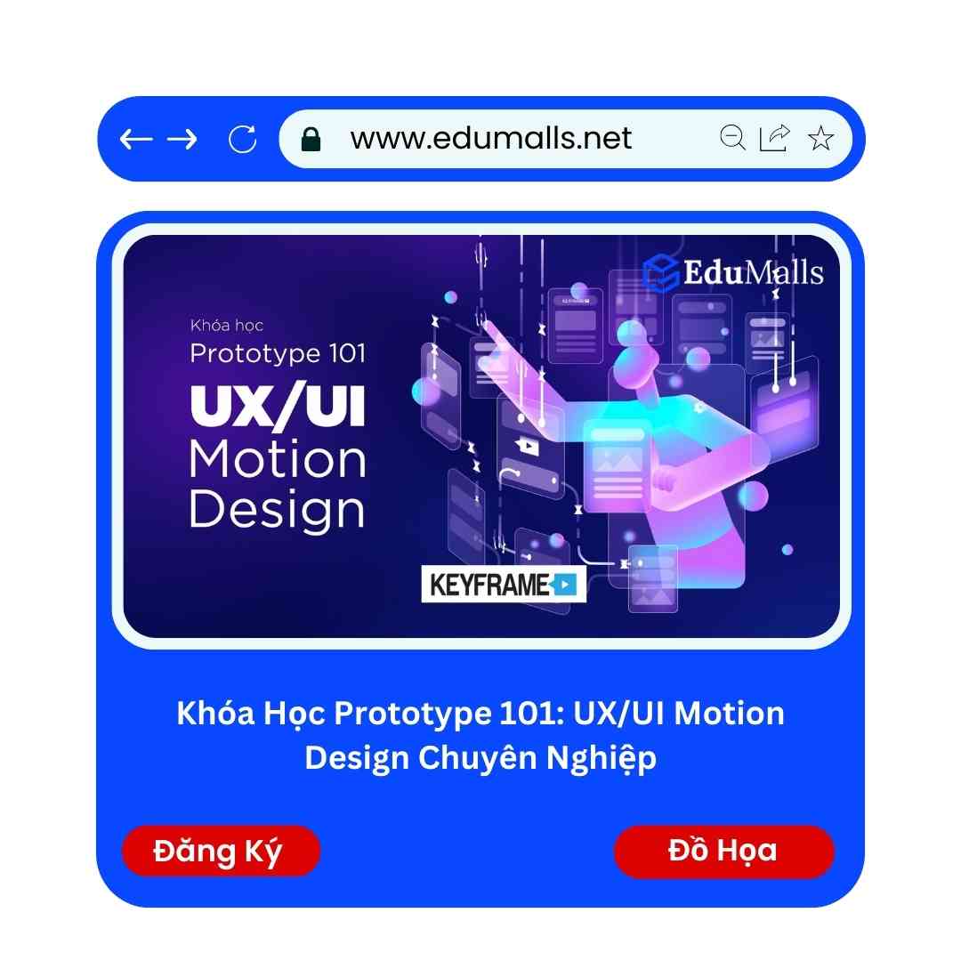 Khóa Học Prototype 101: UX/UI Motion Design Chuyên Nghiệp | Học Rẻ Hơn Cùng EduMalls | Mã: 9235C Khóa học sẽ giúp bạn nắm vững kiến thức cơ bản về Animation, Motion có được nền tảng tự phát triển.
