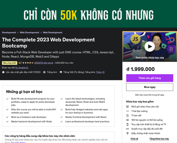 The Complete 2024 Web Development Bootcamp được EduMalls.net chia sẻ lại từ Khoahocsinhvien; Chiasekhoahoc – Khi bạn mua tại EduMalls.net giá sẽ rẻ hơn rất nhiều vì có sẵn và vẫn đầy đủ nội dung từ bên đó.
